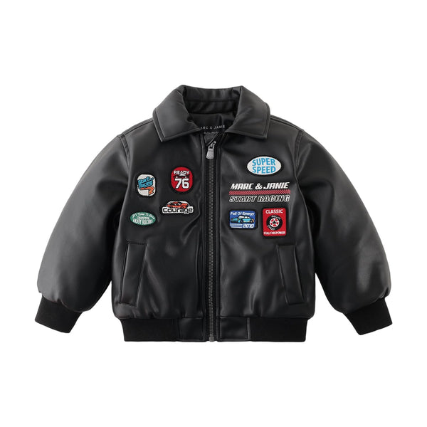 MARC & JANIE Toddler Boy Racing Quilted Faux Leather Jacket 551756
