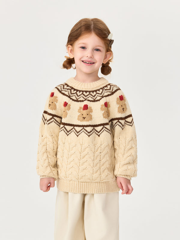 MARC & JANIE Unisex Toddler Kids Fair Isle Bear Soft Knit Pullover Sweater 551862