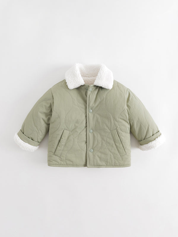 MARC & JANIE Toddler Kids Boy Fluorine-Free Water-Repellent Fur Collar Warm Fleece-Lined Quilted Jacket 551357