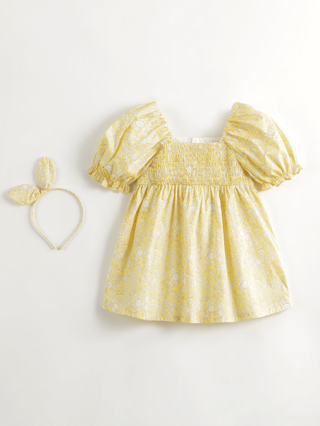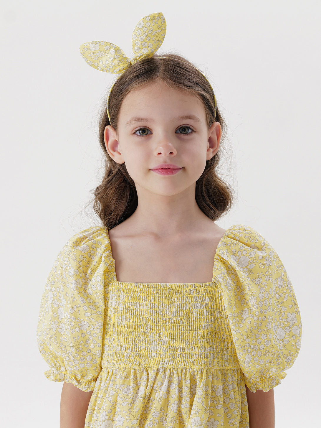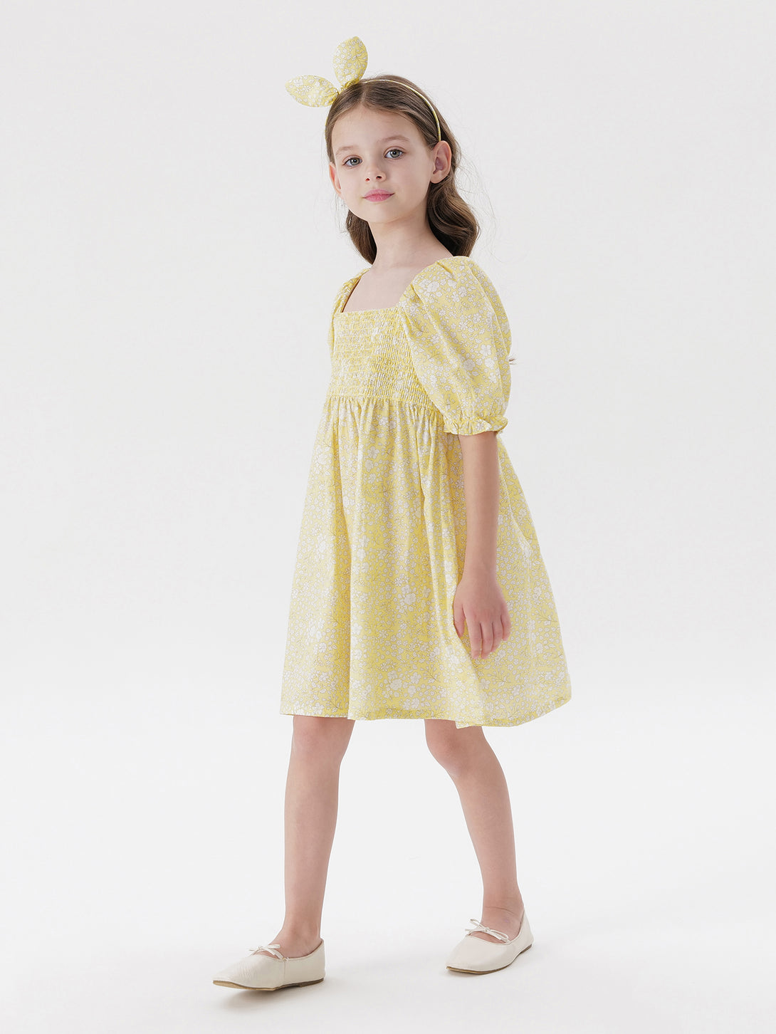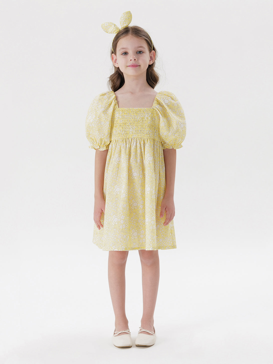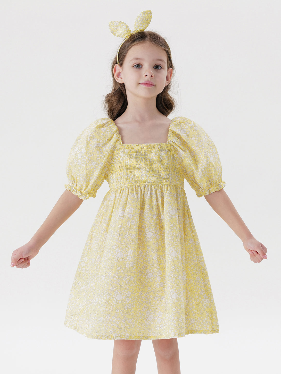 MARC & JANIE Toddler Kids Girl Flower Bubble Sleeve Princess Dress with Hair Bands 240681