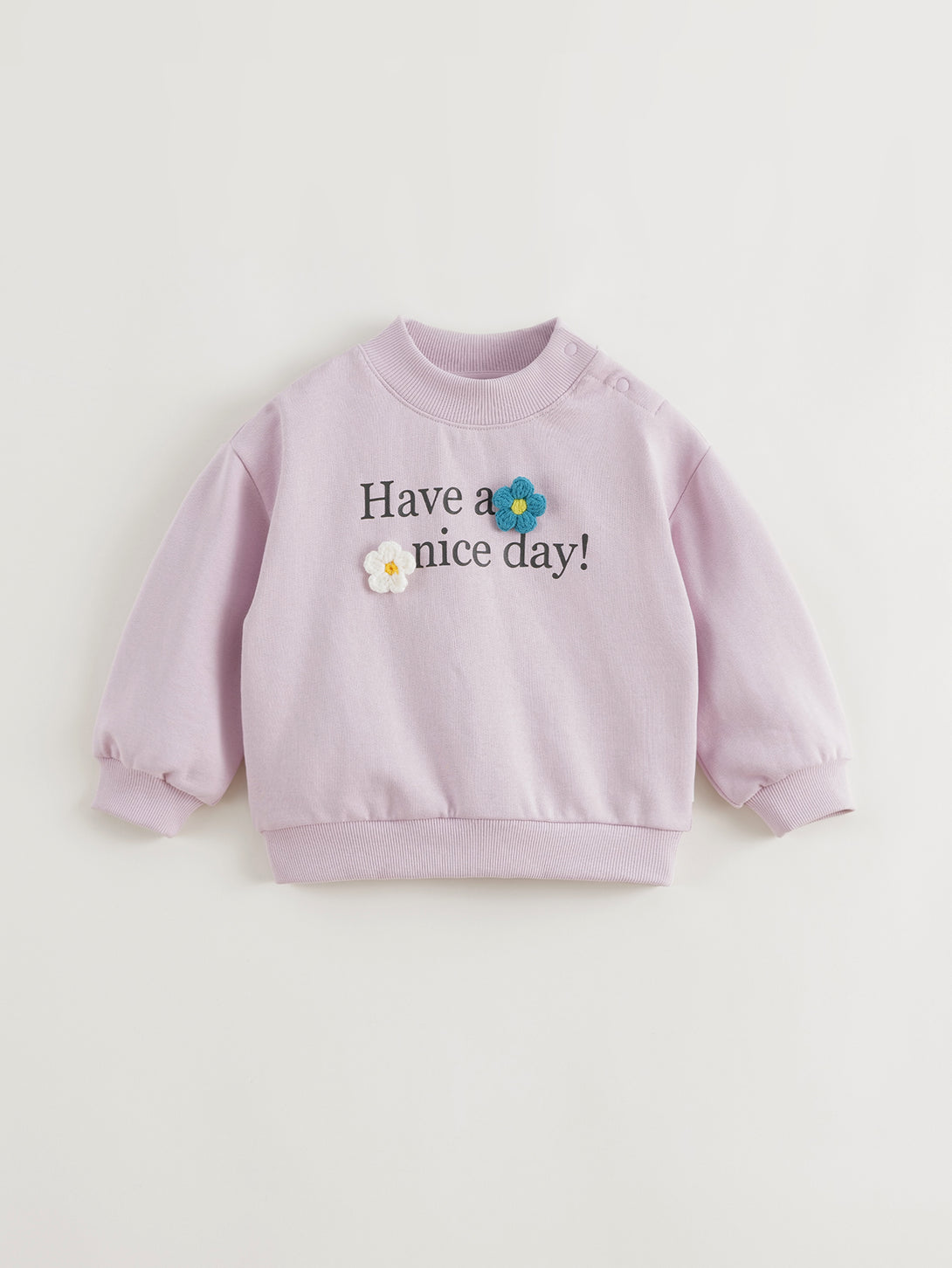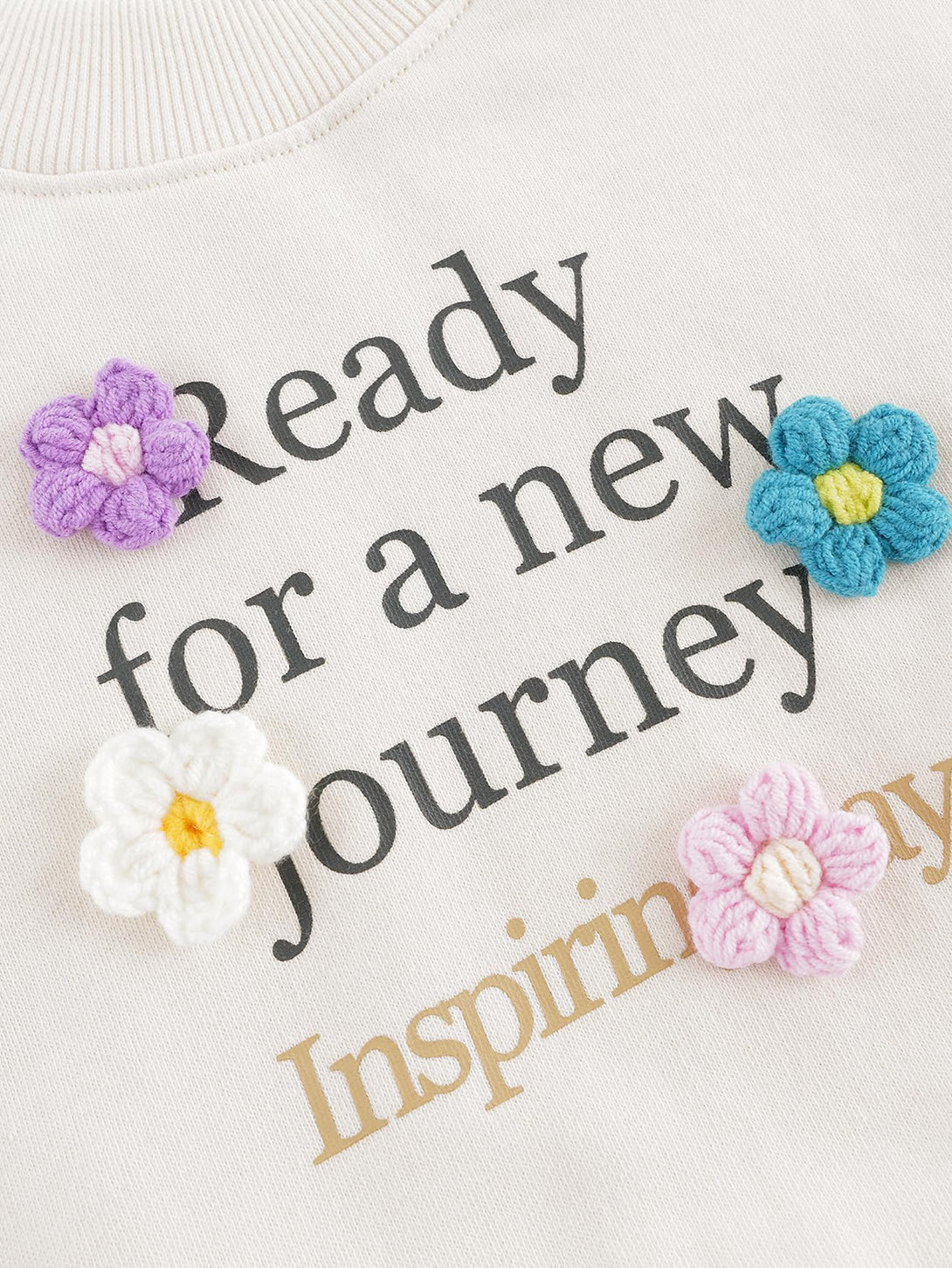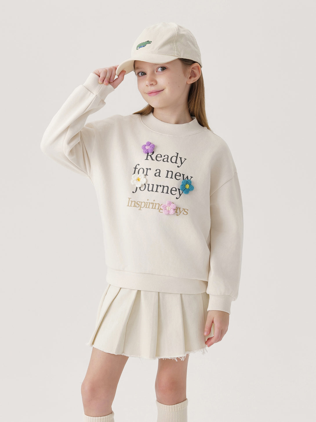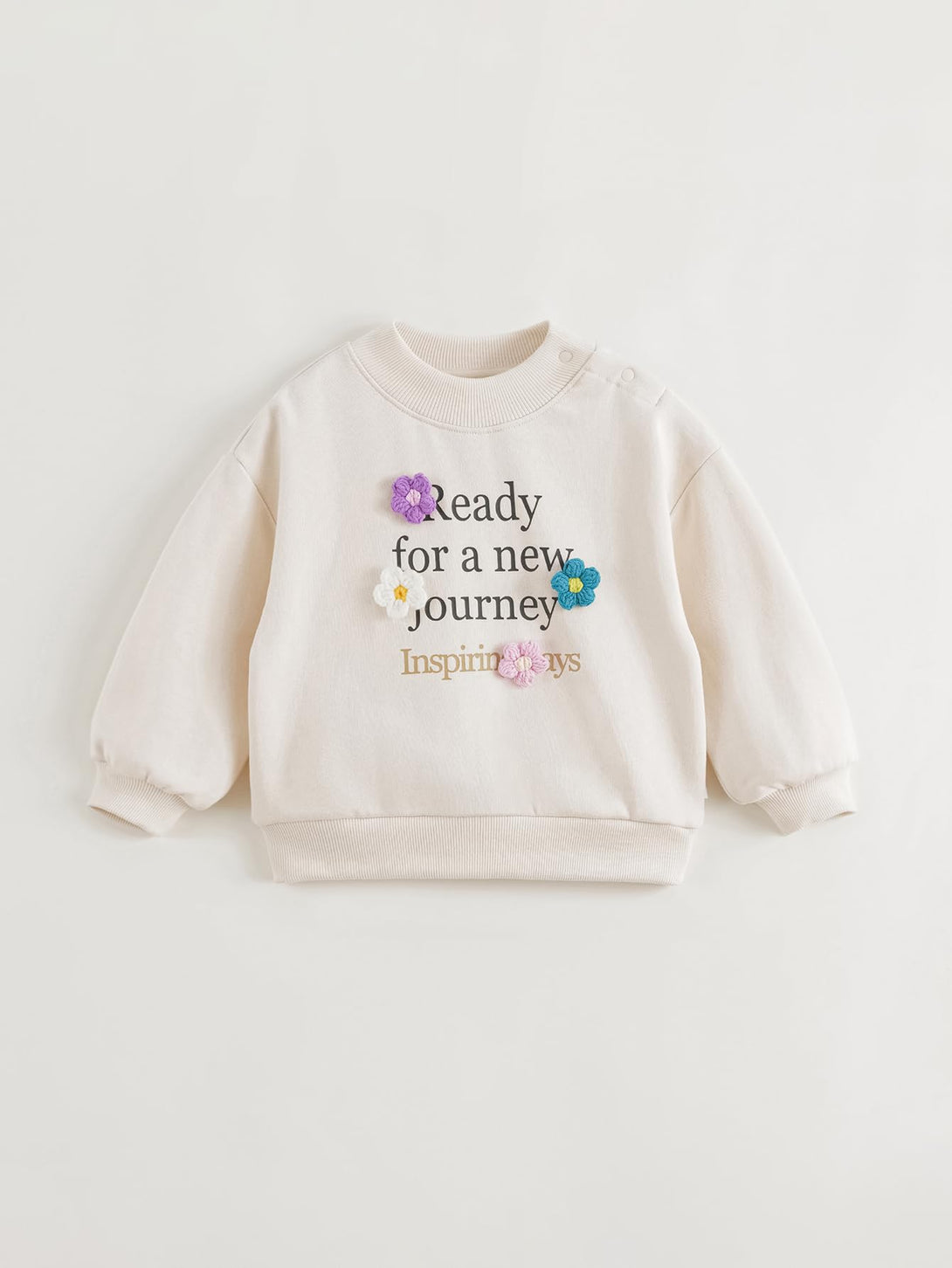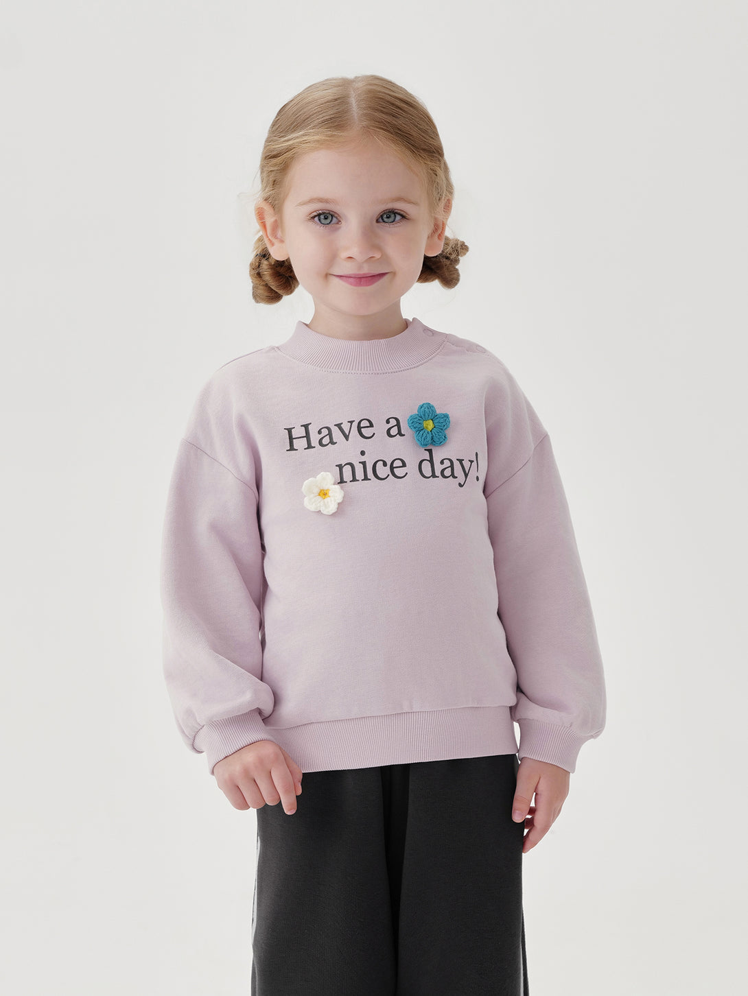 MARC & JANIE Toddler Kids Girl 3D Flower Drop Shoulder Sweatshirt 241336