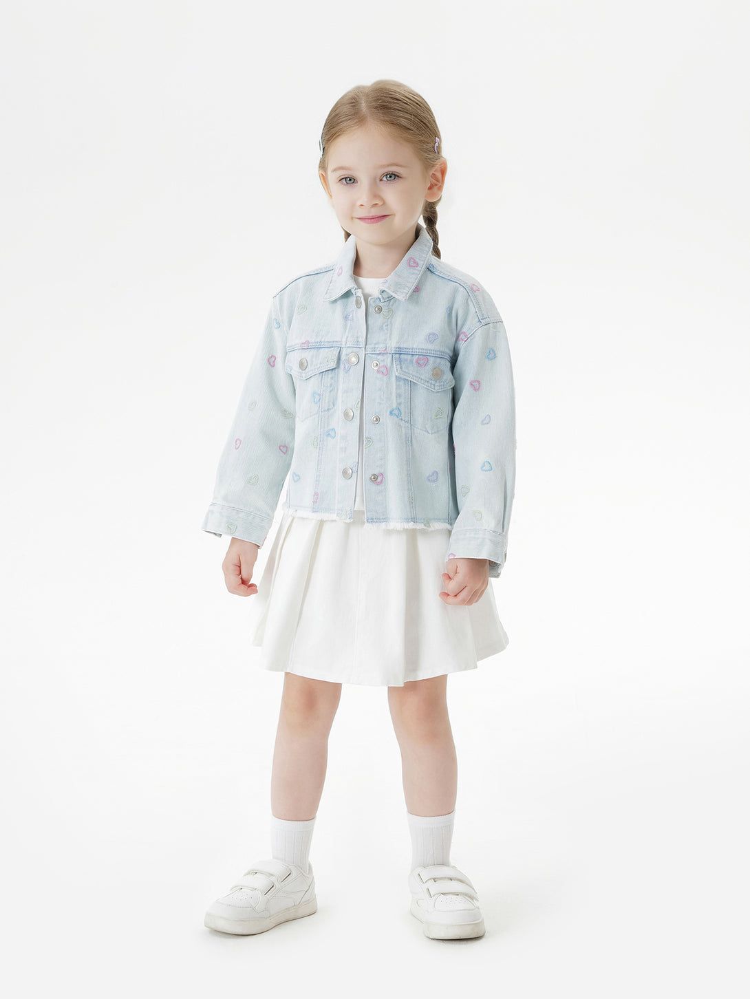 MARC & JANIE Toddler Girl Colorful Embroidered Heart Denim Jacket 250191