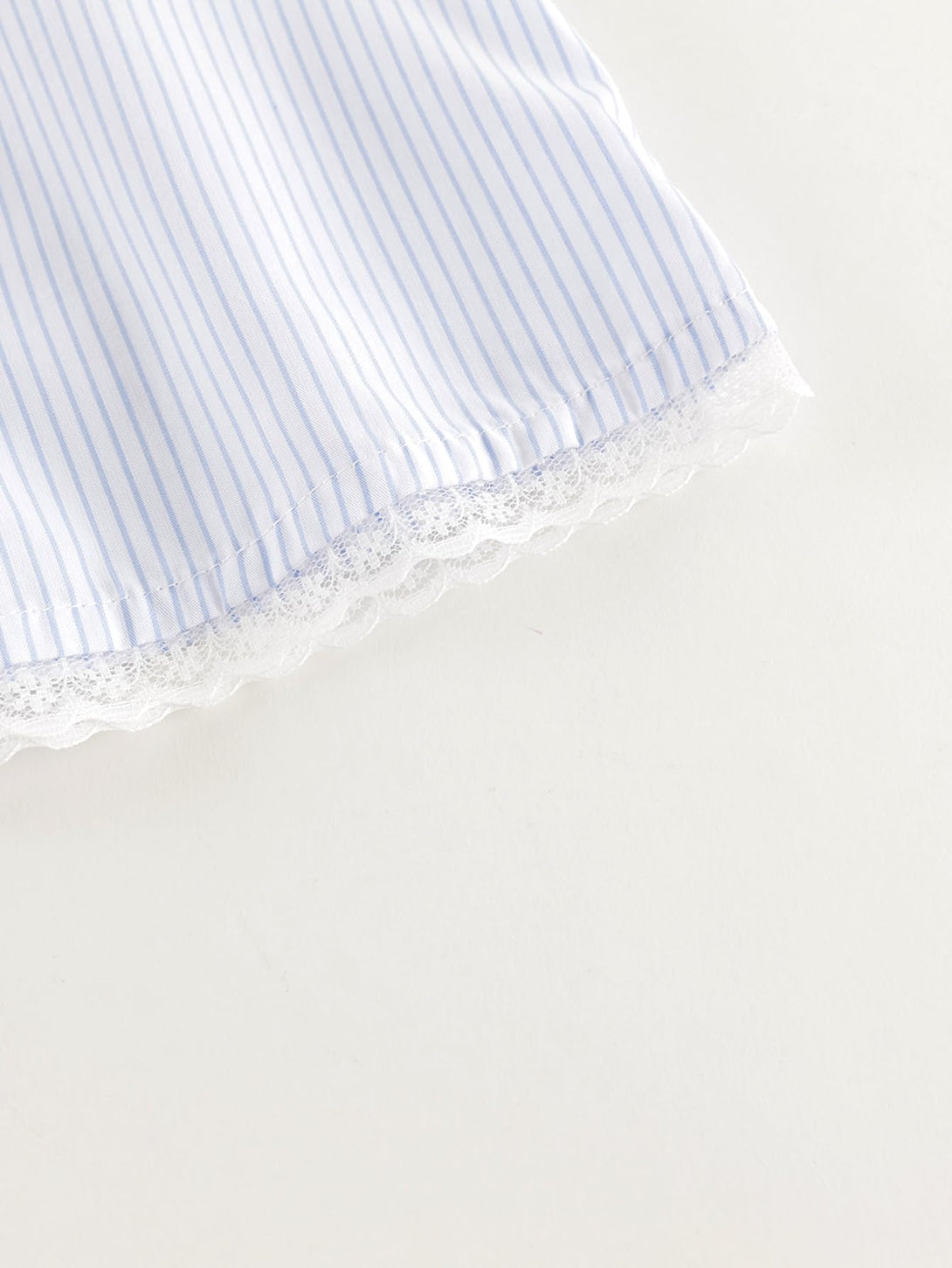 Fresh and Effortless Style: Featuring fresh stripes and a lace trim, this shirt offers a simple yet stylish look, making it easy to mix and match with different outfits