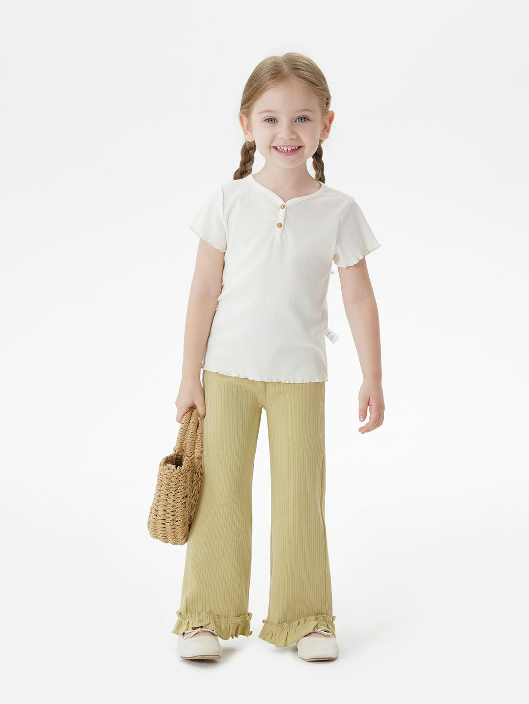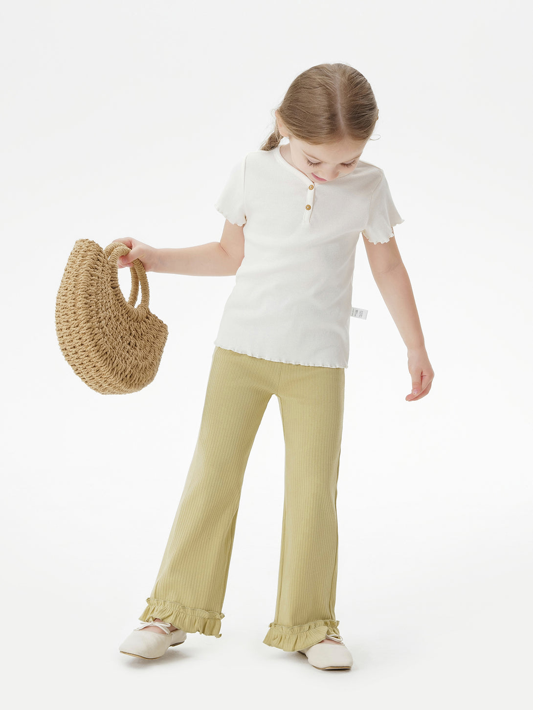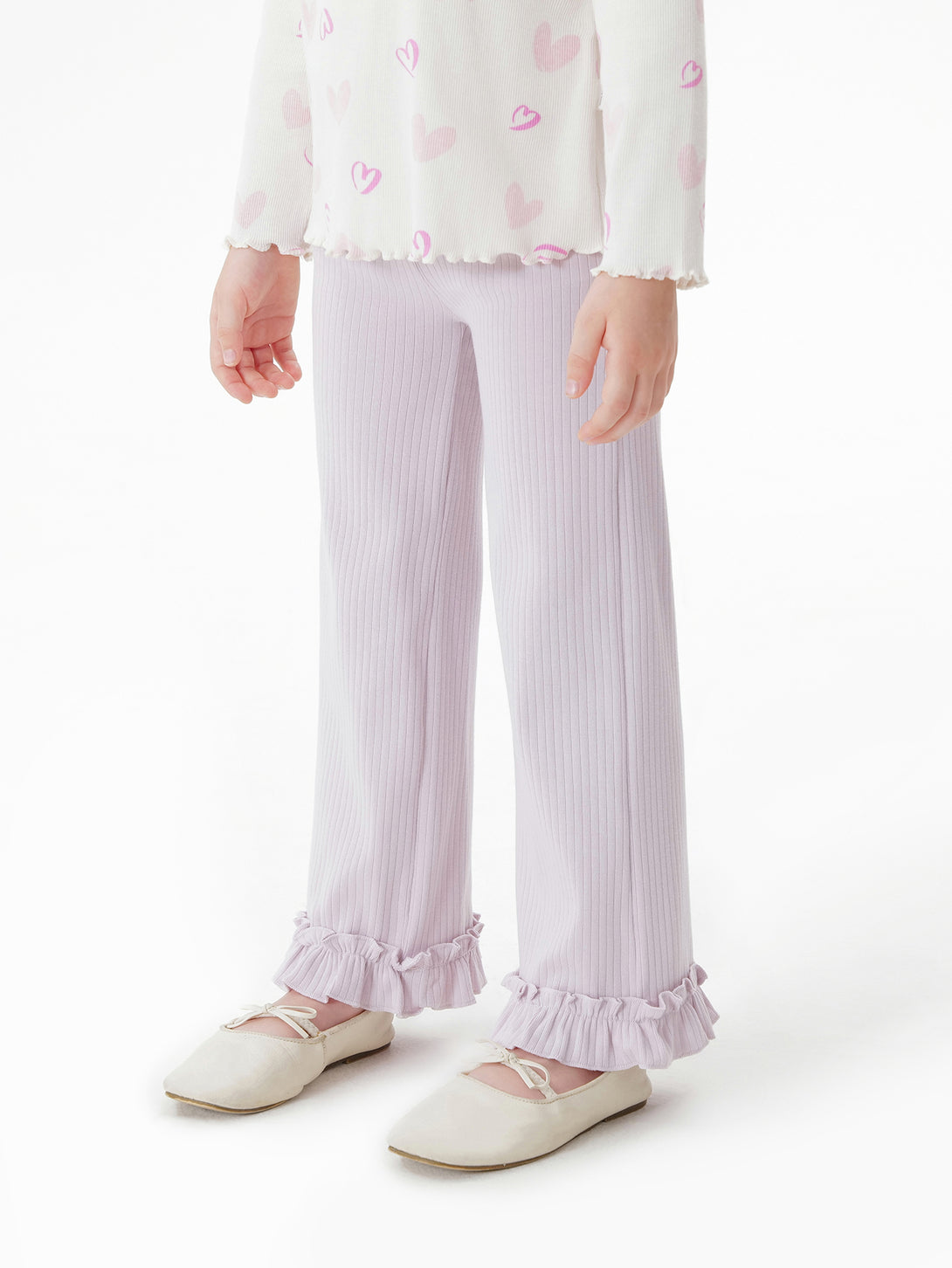 Delicate Ruffle Detailing: The subtle ruffle trim at the hem adds a playful and sweet touch, making these pants easy to pair with any outfit