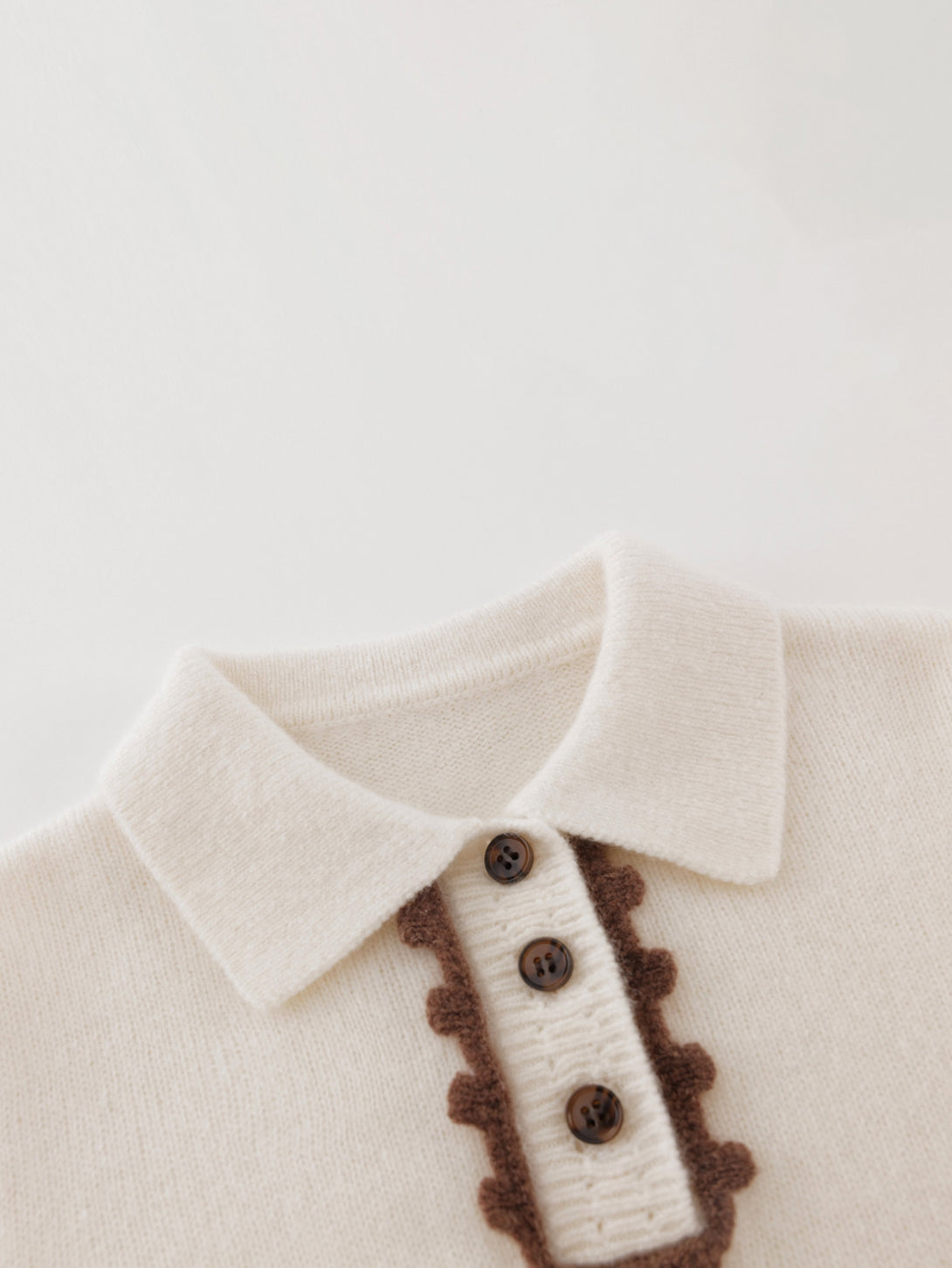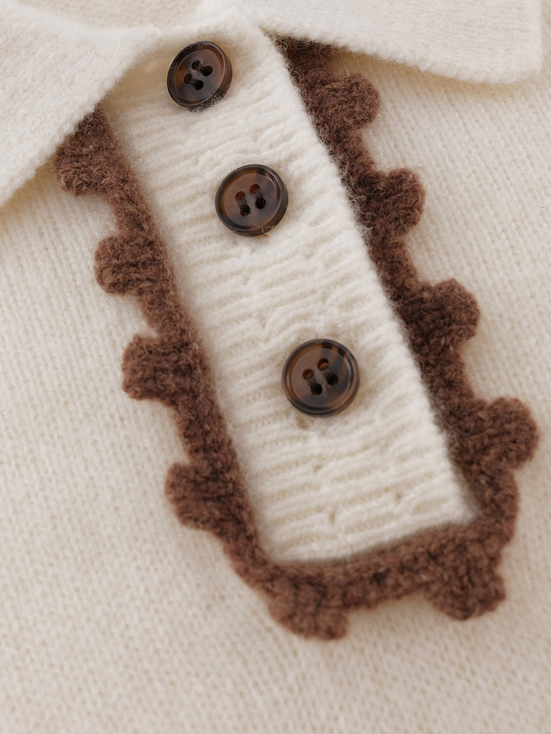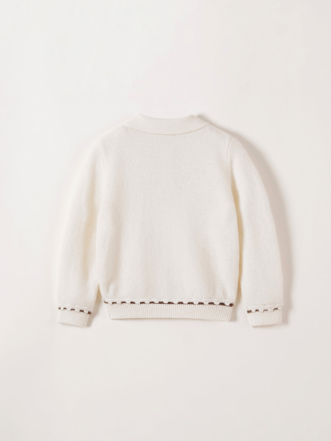 MARC & JANIE Kids Girl 100% Wool Ruffled Polo Collar Sweater 551893