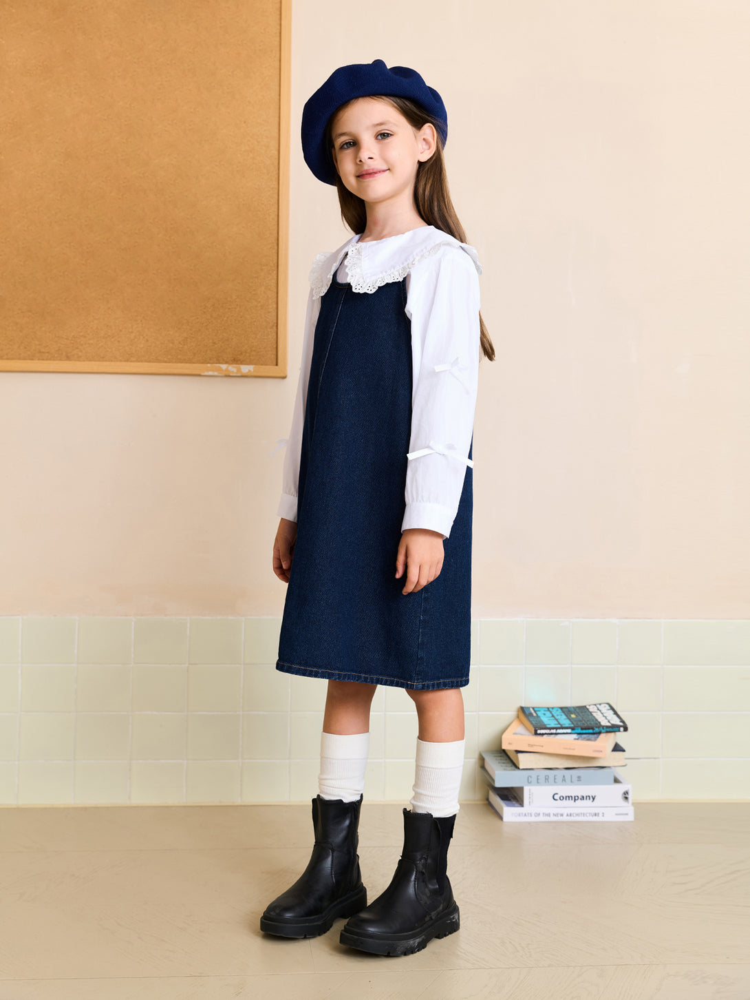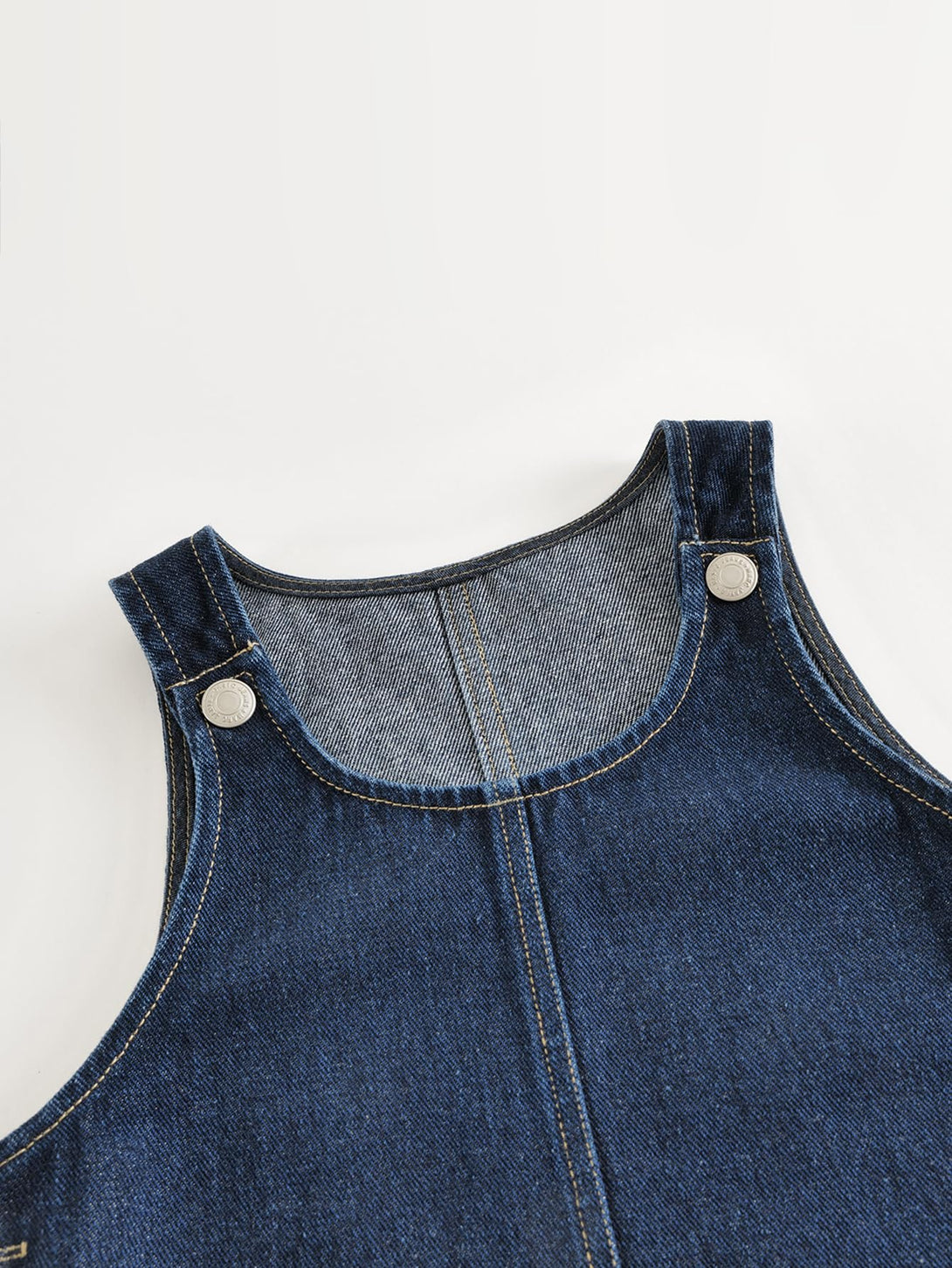 Vintage Denim A-line Suspender Dress: Made with 100% soft and comfortable denim cotton