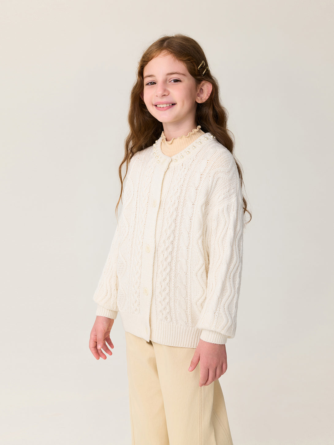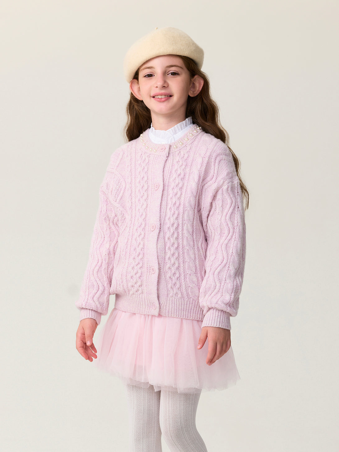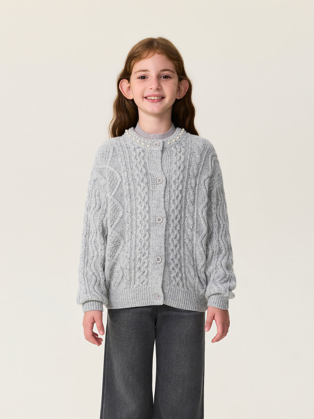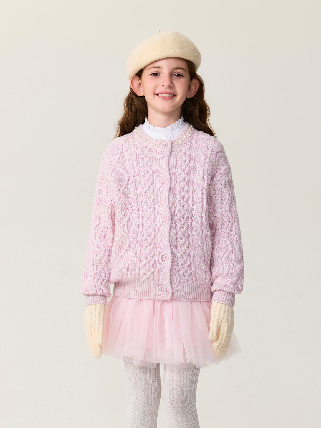 MARC & JANIE Kids Girl Wool Diamond-Pattern Cable-Knit Cardigan Sweater 551878
