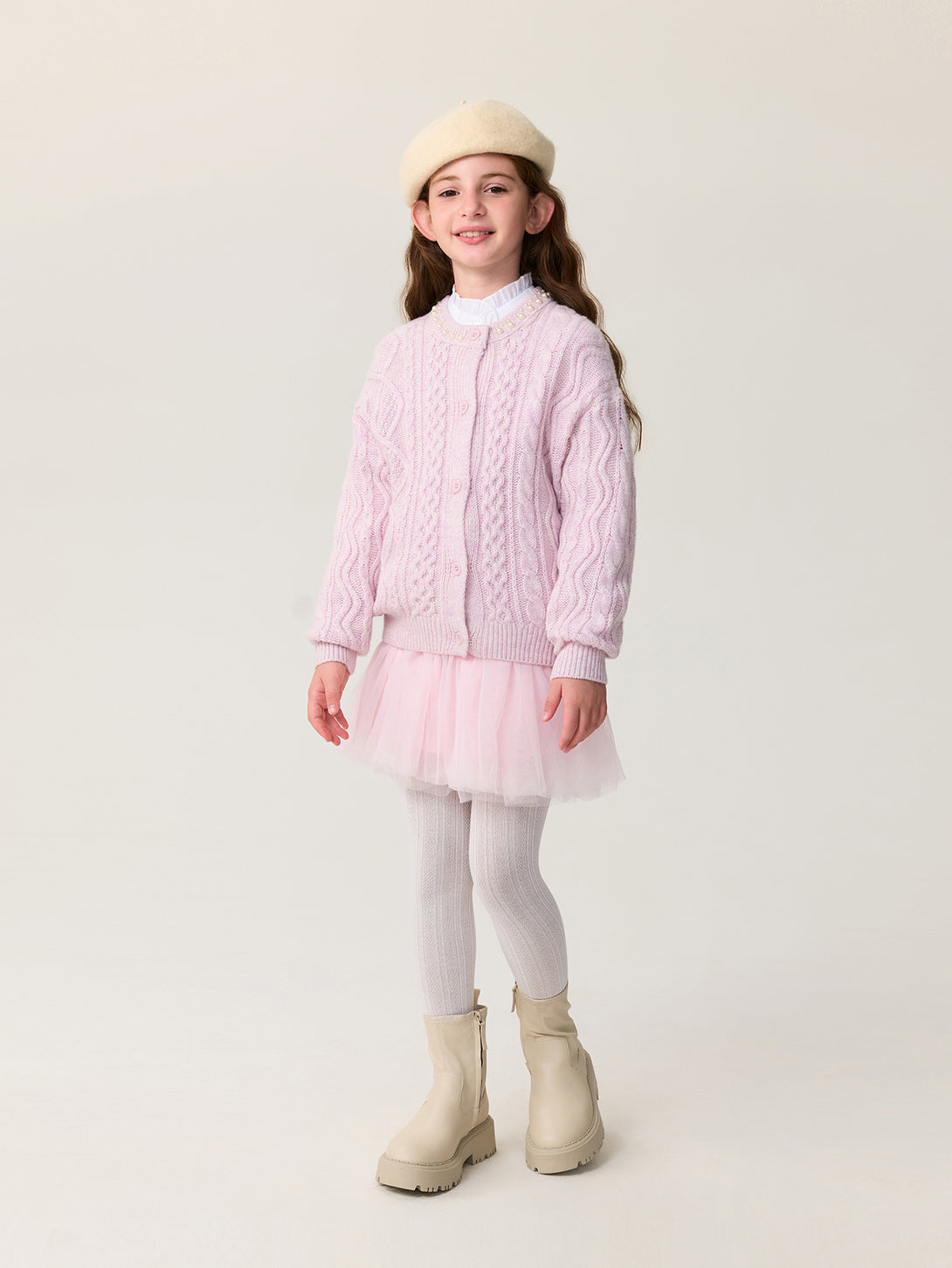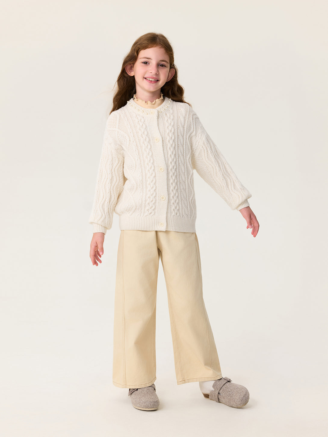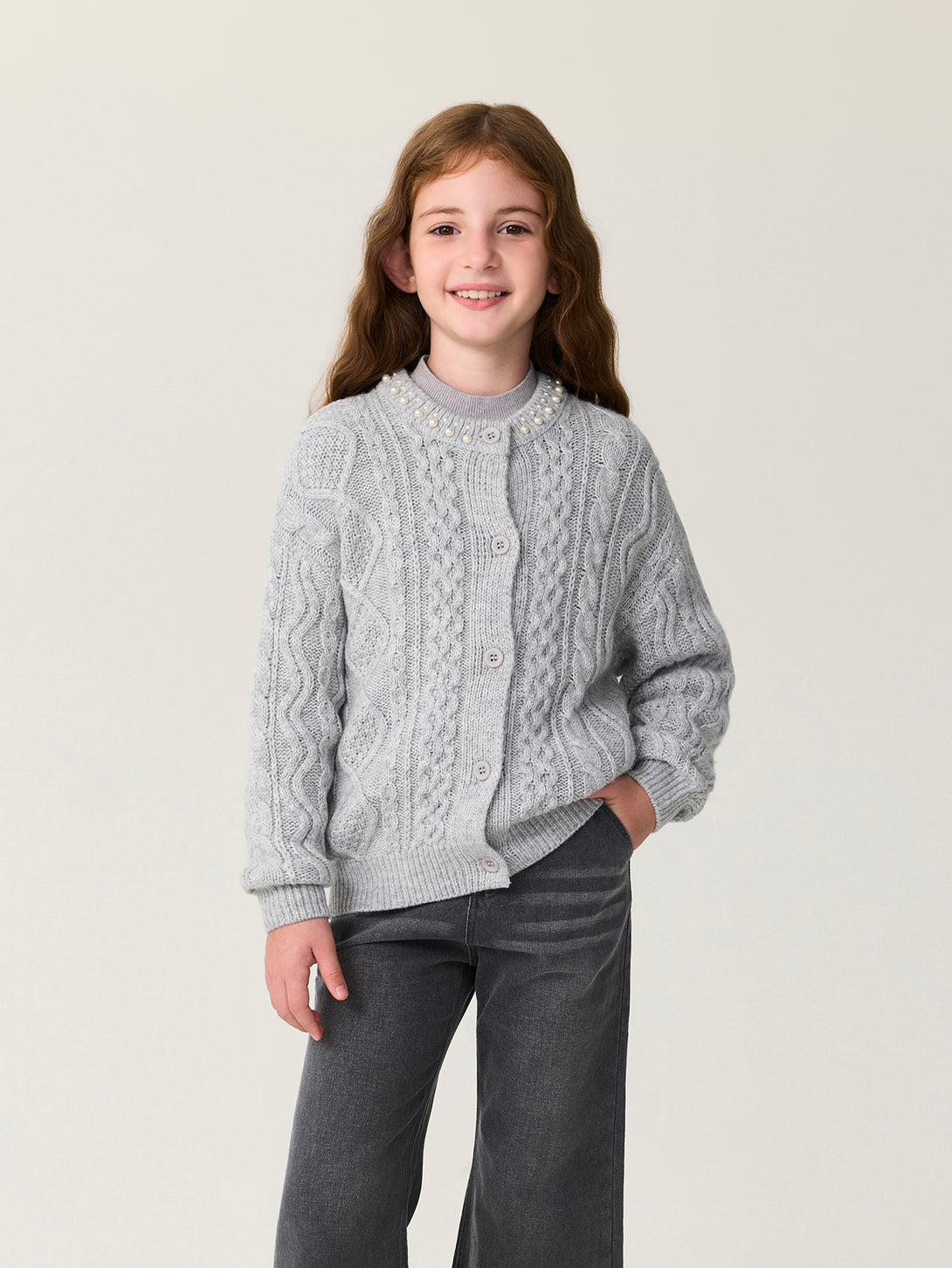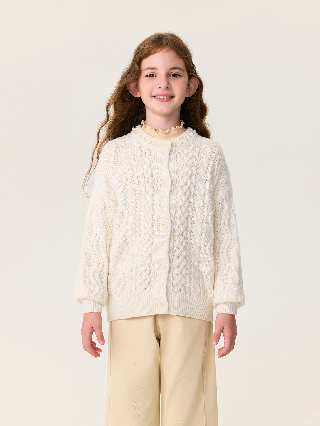 MARC & JANIE Kids Girl Wool Diamond-Pattern Cable-Knit Cardigan Sweater 551878