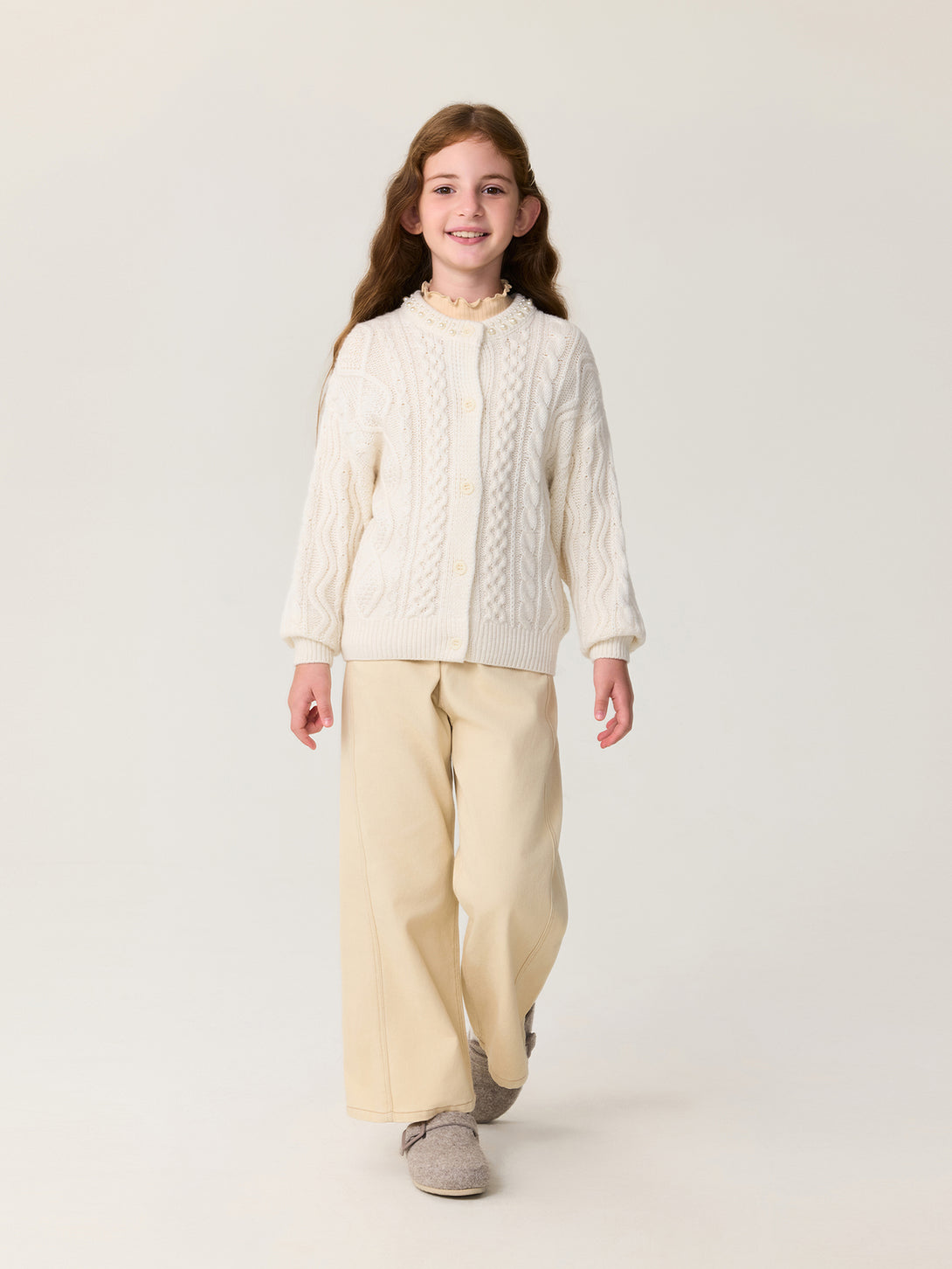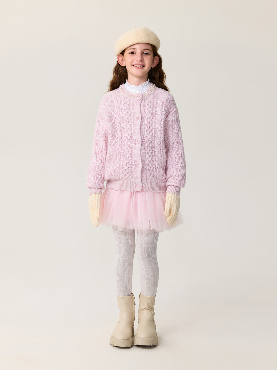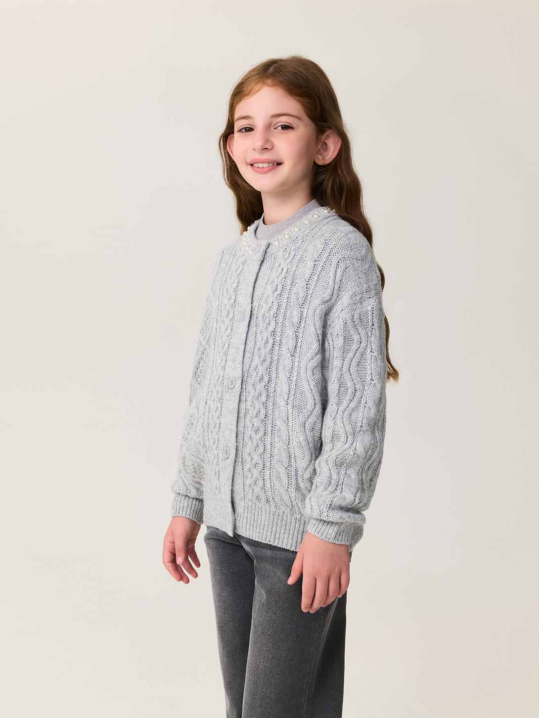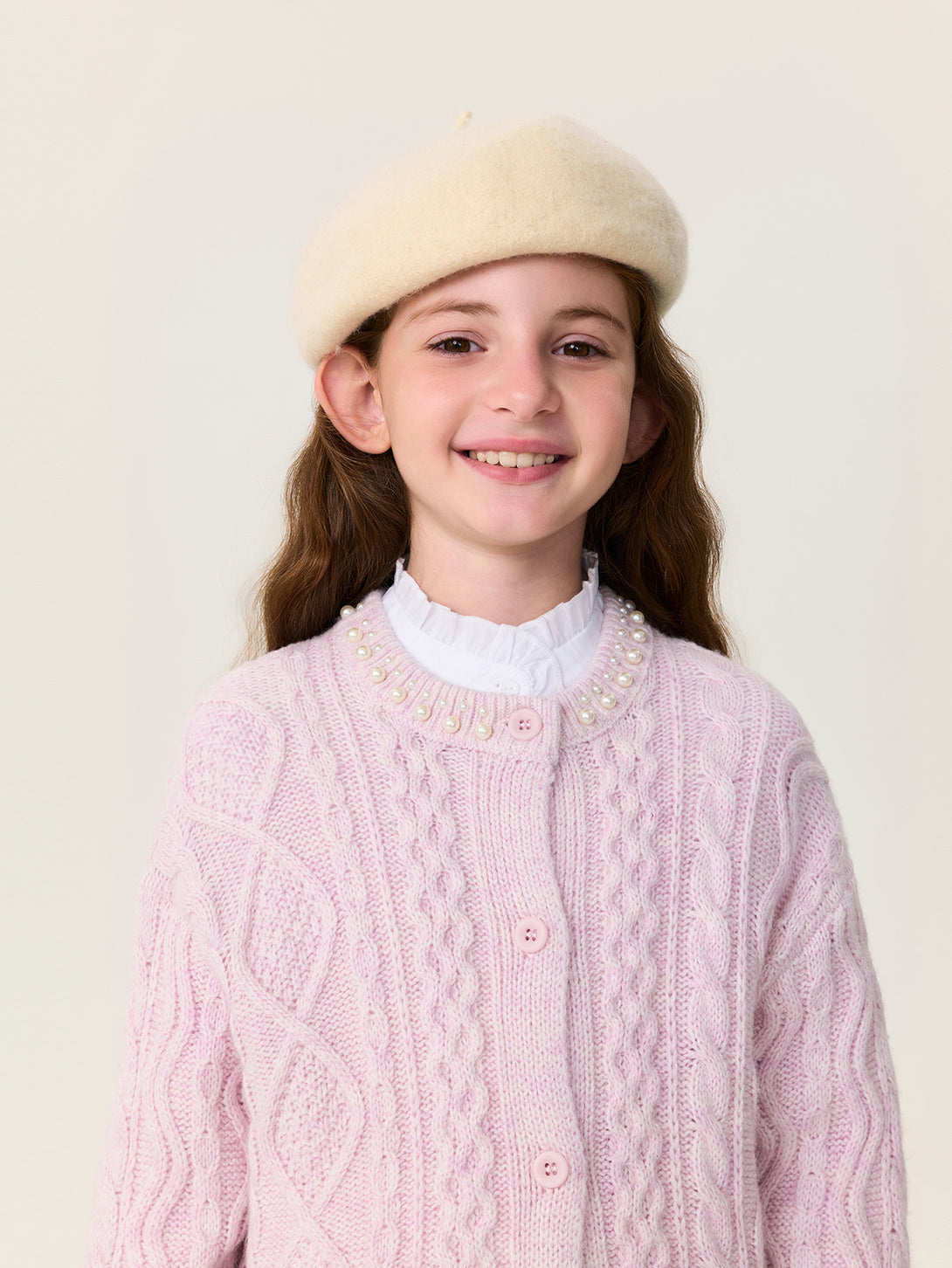 MARC & JANIE Kids Girl Wool Diamond-Pattern Cable-Knit Cardigan Sweater 551878
