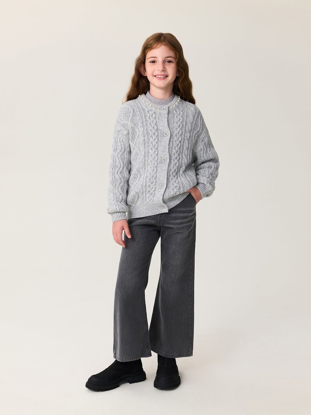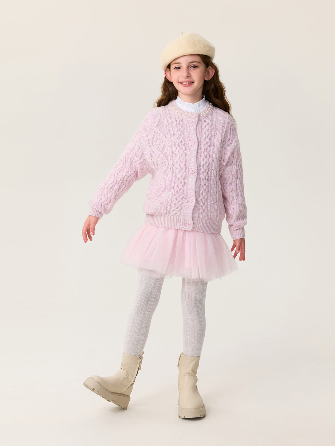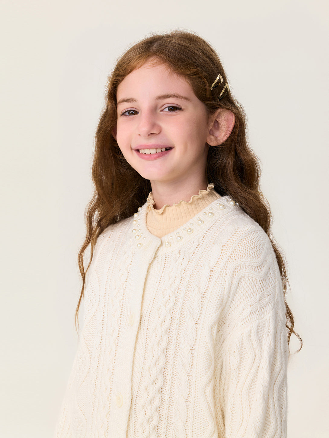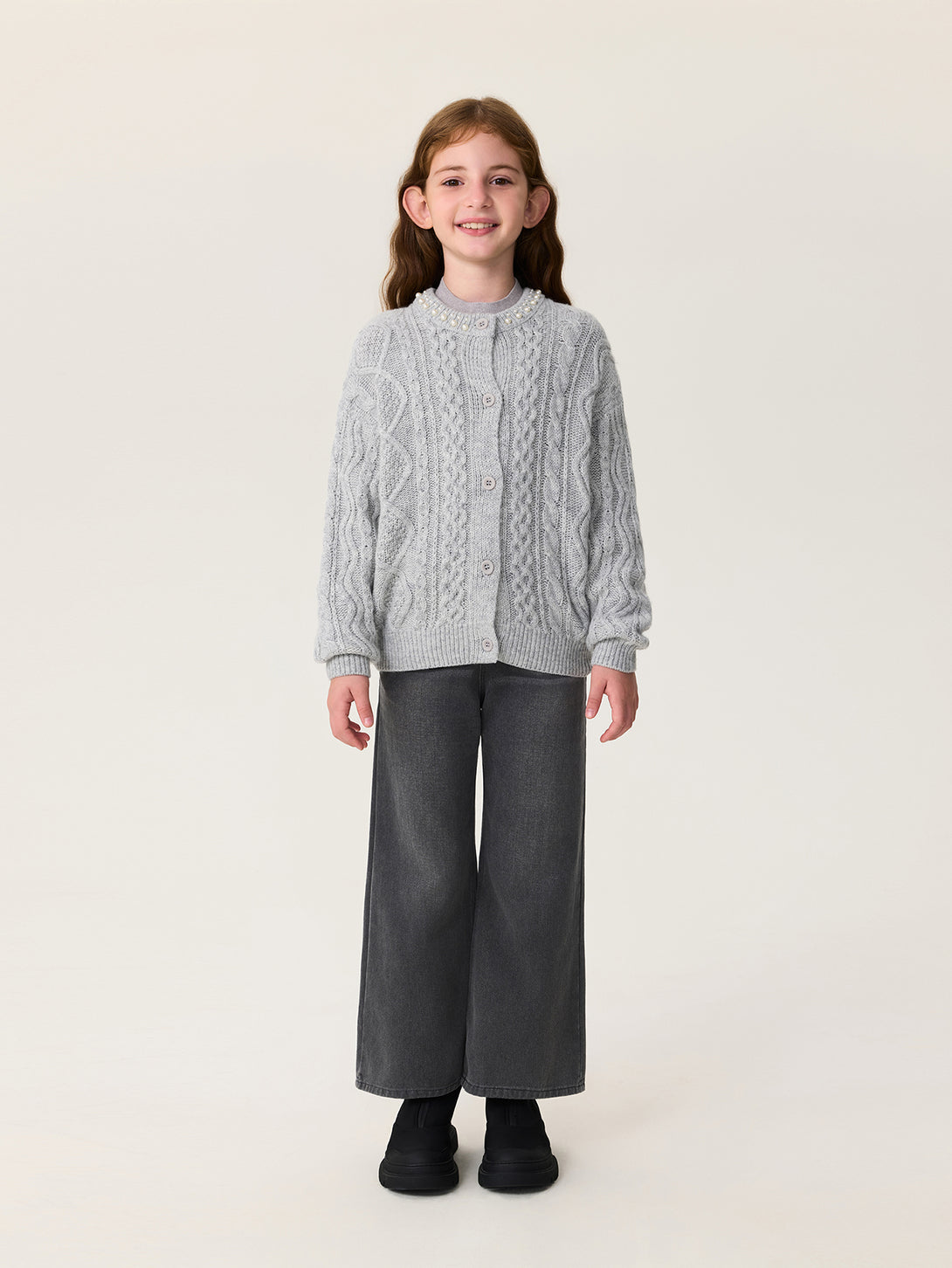 MARC & JANIE Kids Girl Wool Diamond-Pattern Cable-Knit Cardigan Sweater 551878