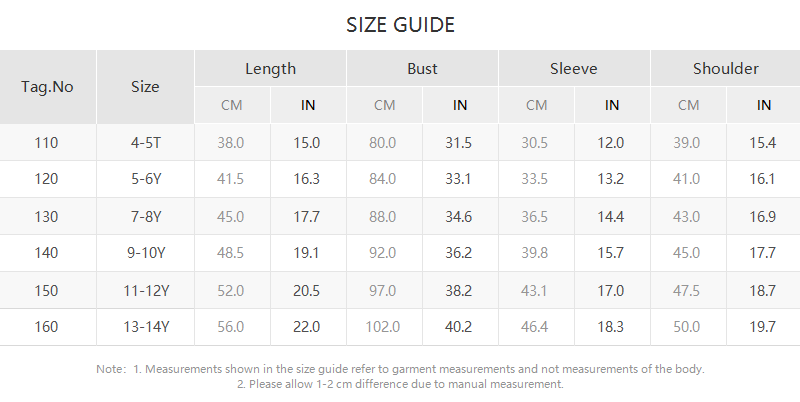 Product size chart in the picture or description.