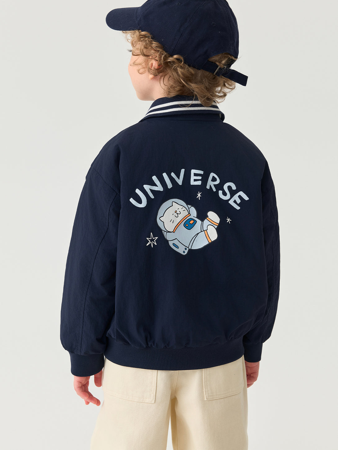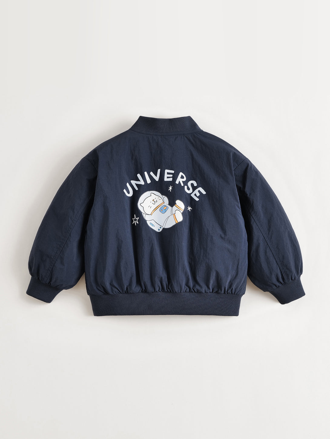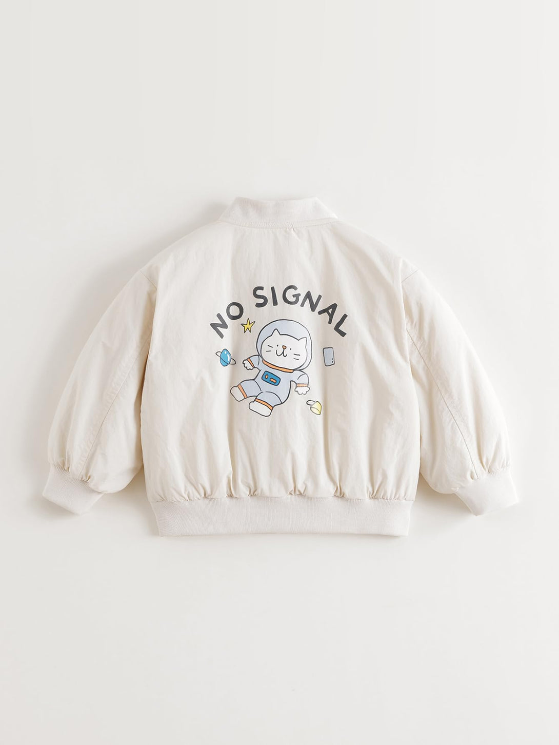 MARC & JANIE Toddler Boy Fluorine-Free Water-Repellent Cat Astronaut Padded Baseball Jacket 551361