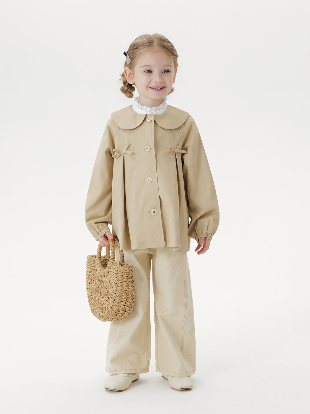 MARC & JANIE Toddler Girl Bow Collar Cotton Trench Coat 551575