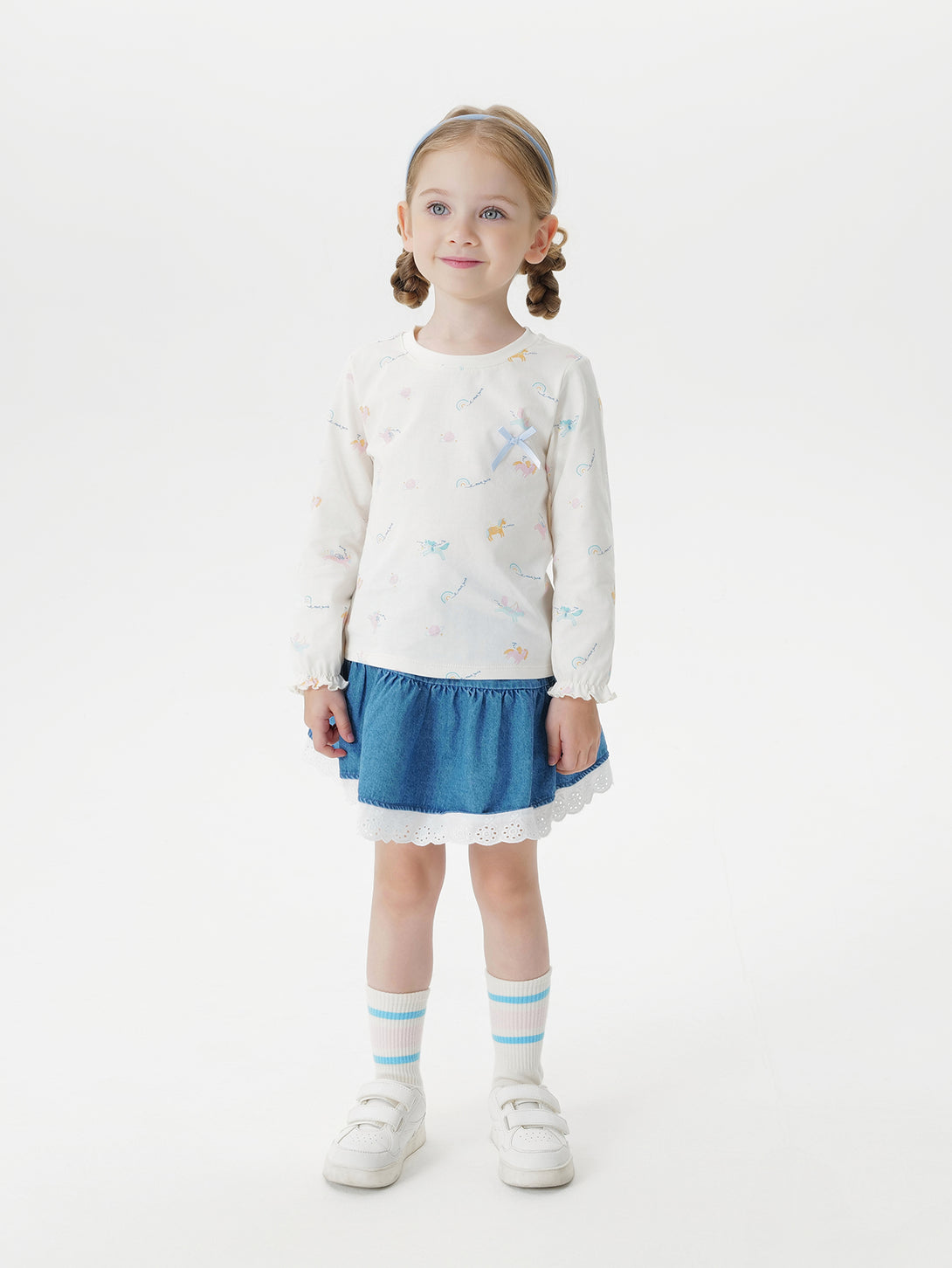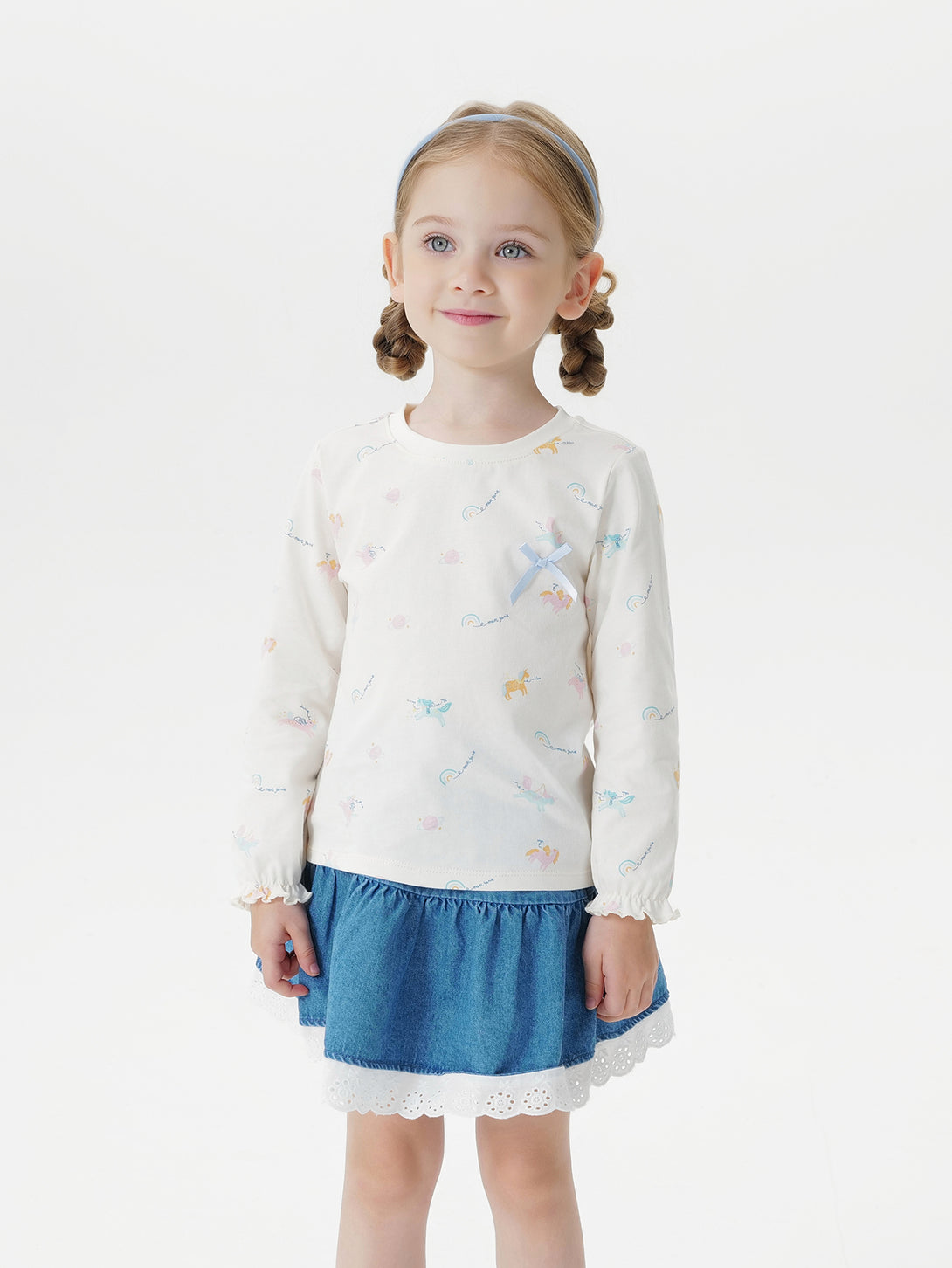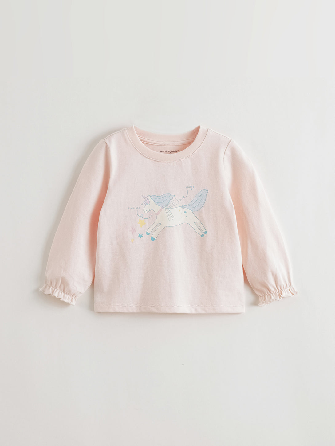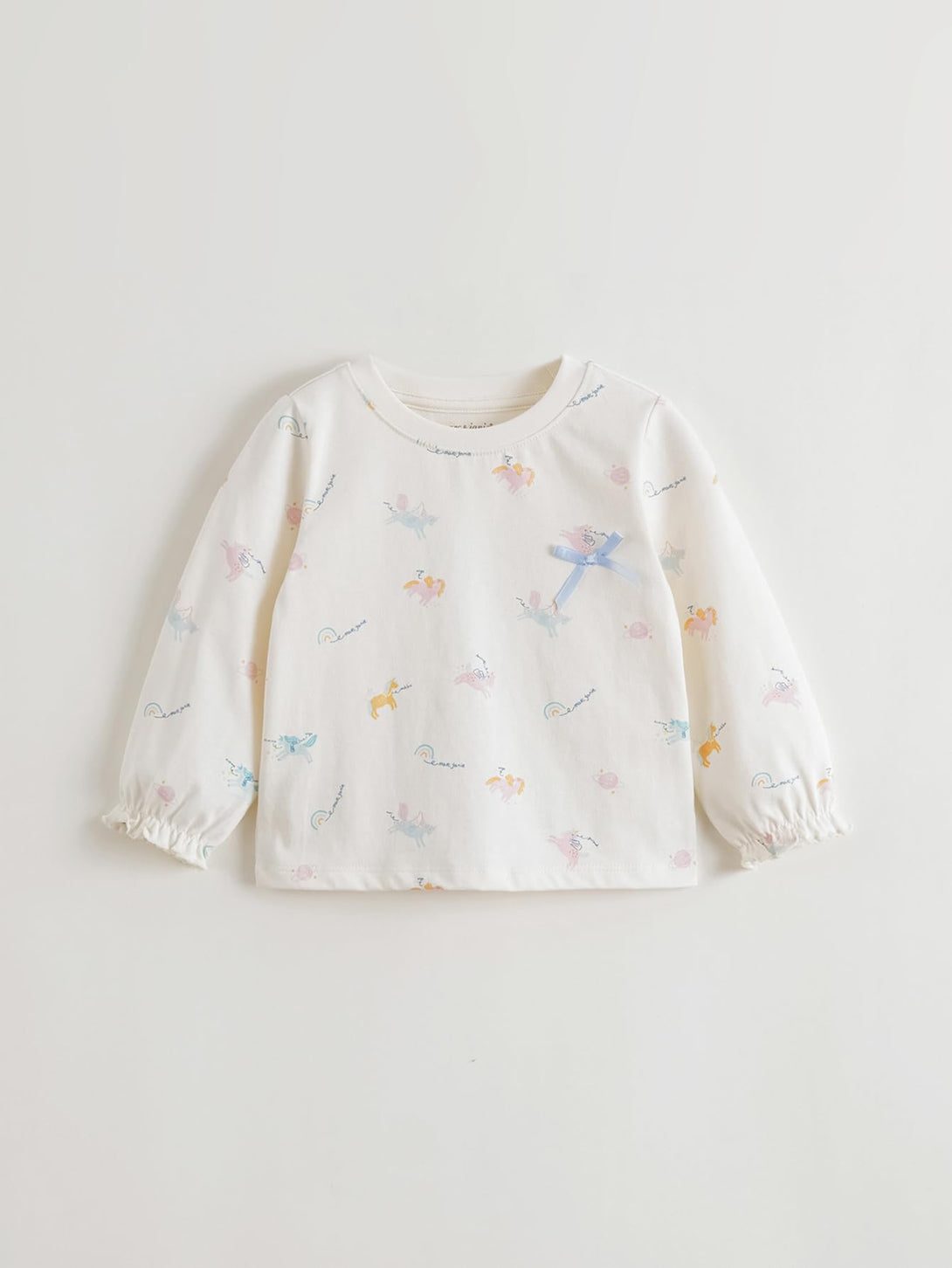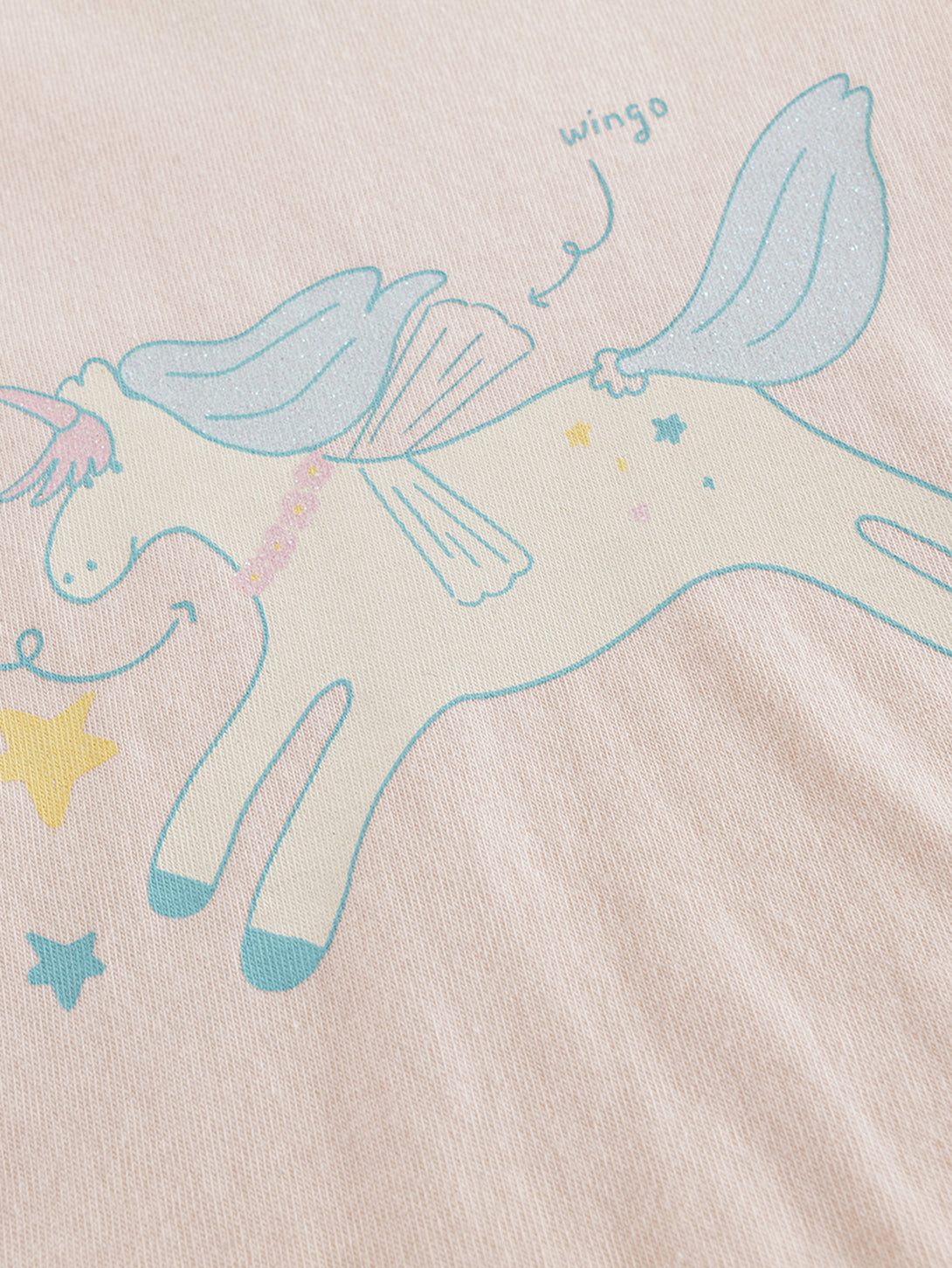 Rainbow pony print and bow embellishment: Cute and playful with sweet detailing