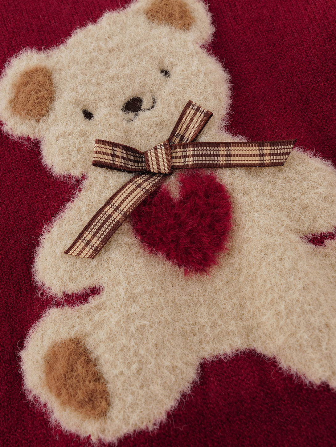 MARC & JANIE Toddler Girl Cute Doll Bear Red Knit Sweater 551891