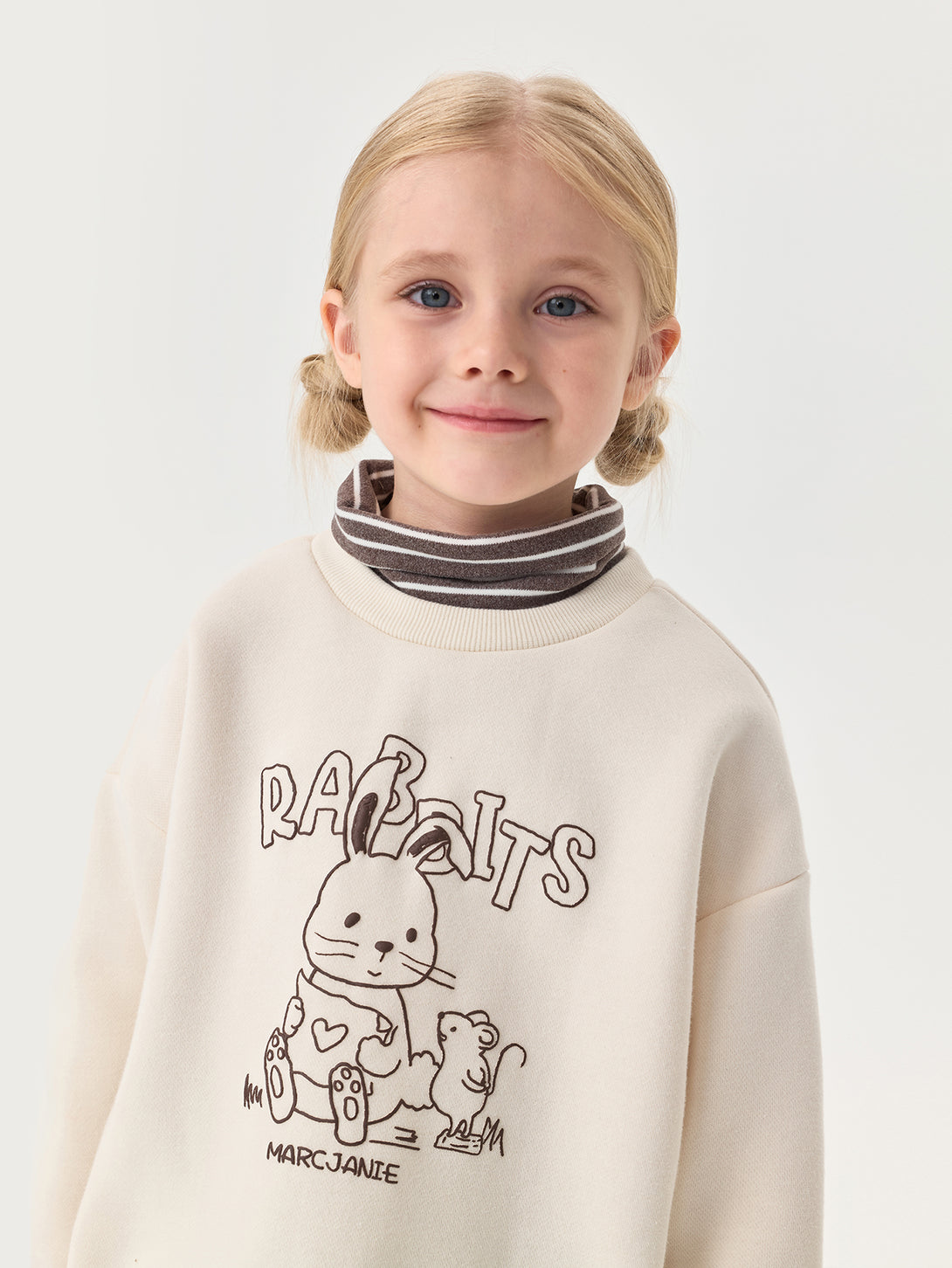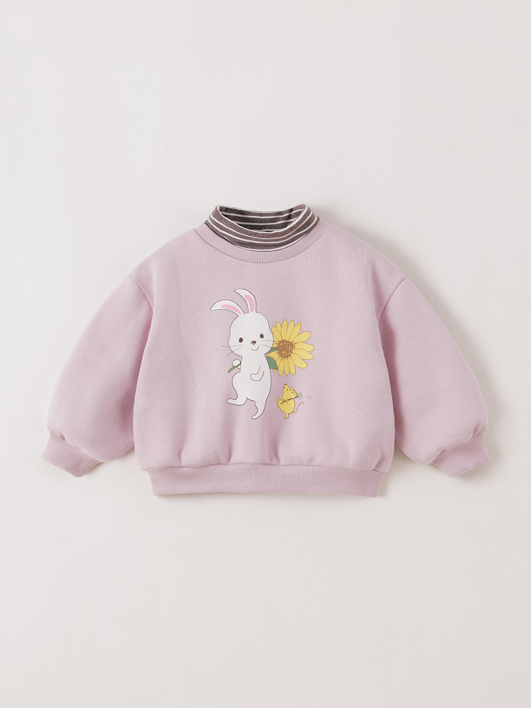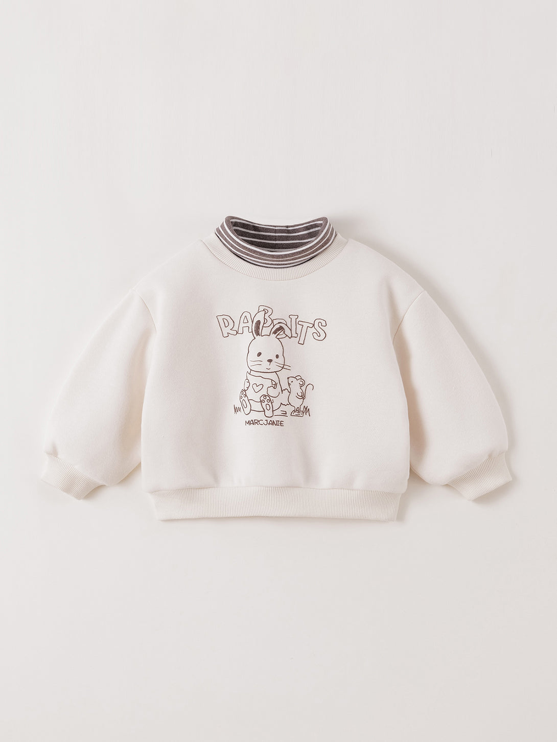MARC & JANIE Toddler Girl Fleece Lined Turtleneck Sweatshirt Cute Rabbit Print Winter Warm Fake Two Piece Pullover 551187