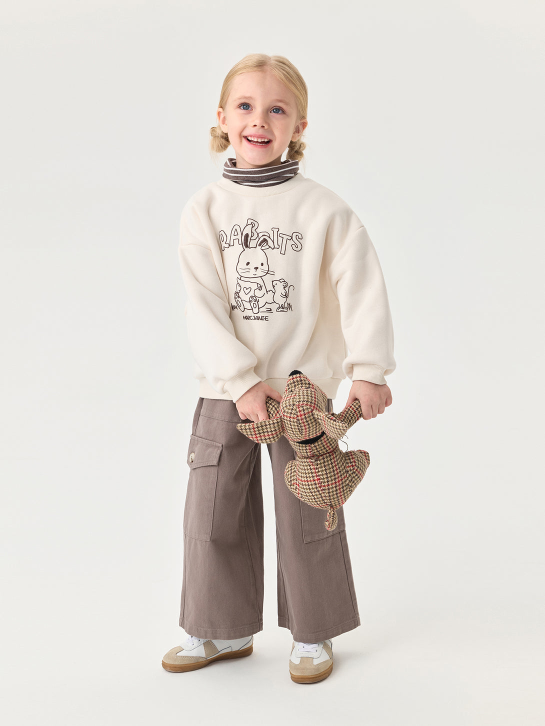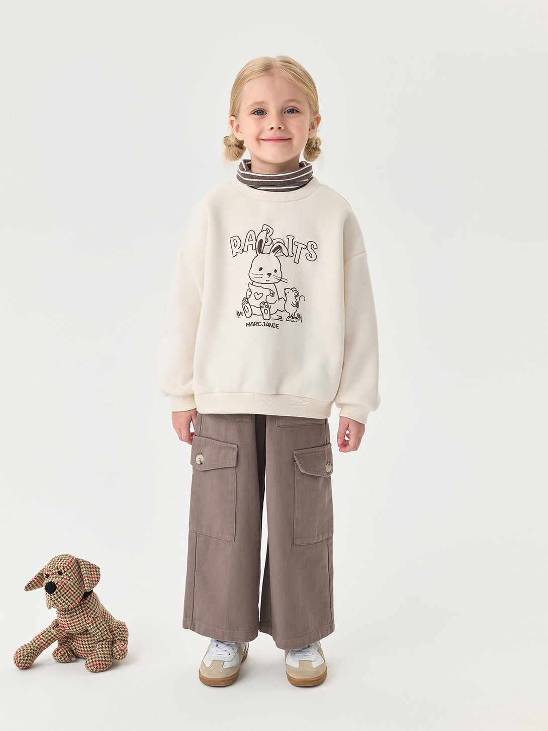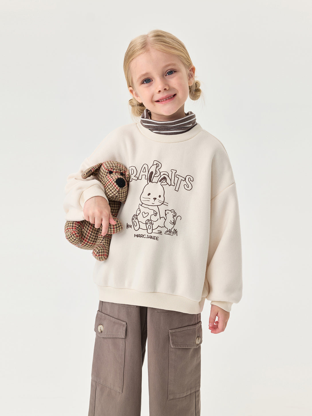 MARC & JANIE Toddler Girl Fleece Lined Turtleneck Sweatshirt Cute Rabbit Print Winter Warm Fake Two Piece Pullover 551187
