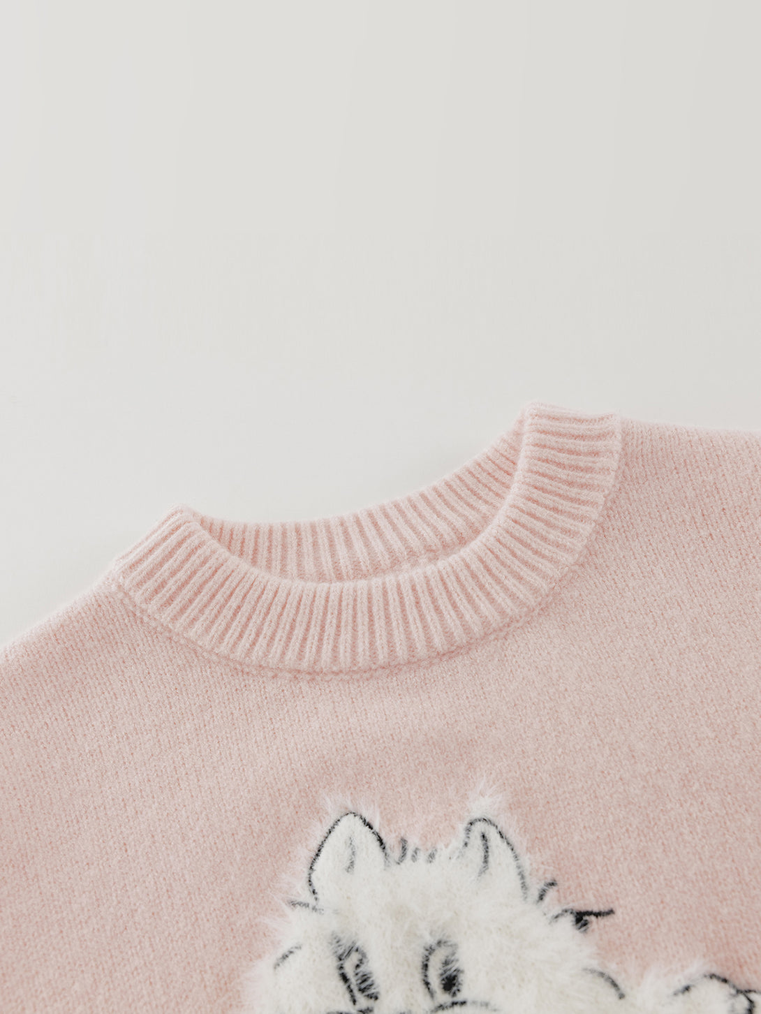 MARC & JANIE Toddler Girl Sweet Cute Cat Wool Knit Sweater 551927