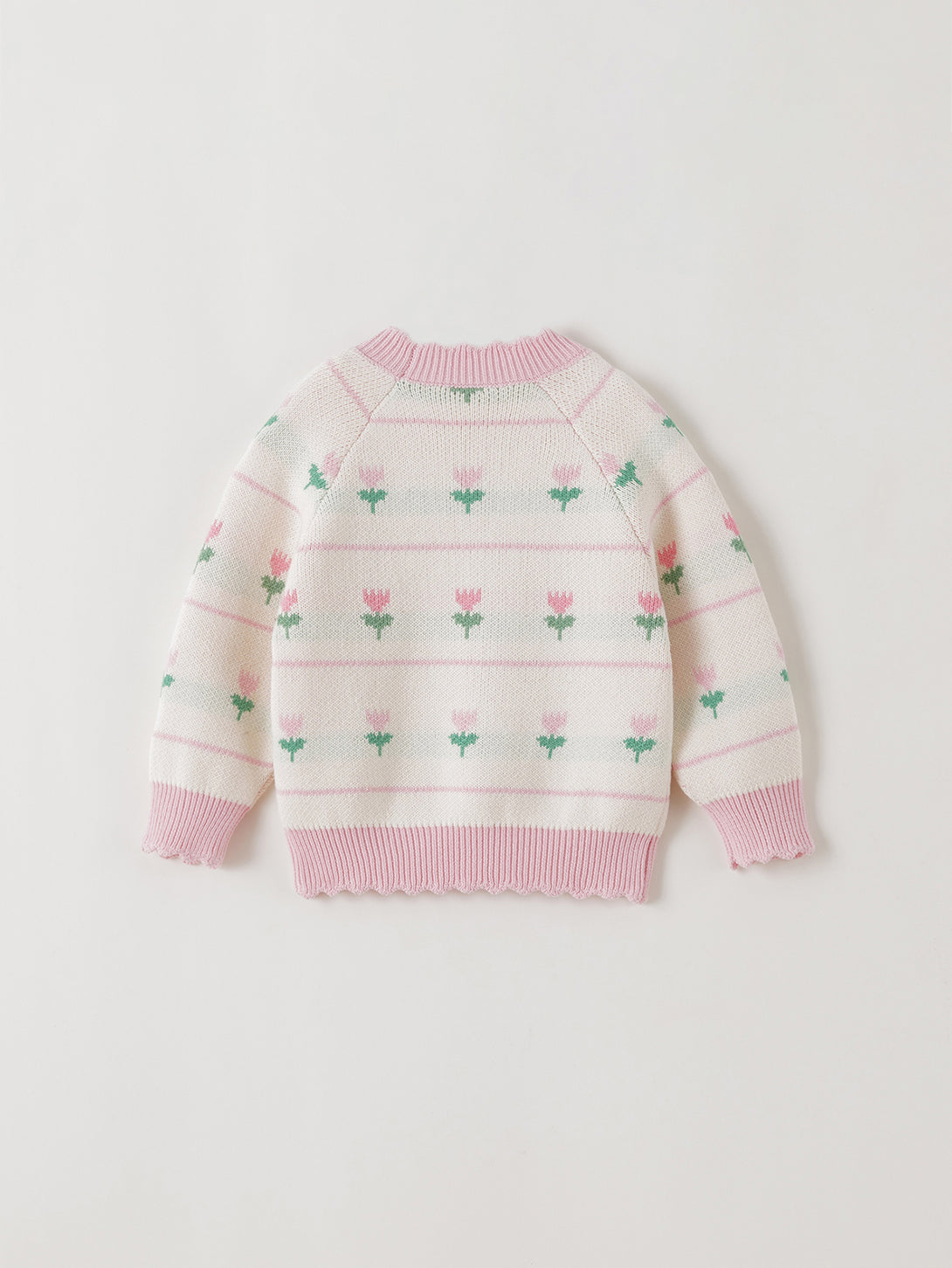 MARC & JANIE Toddler Girl Sweet Tulip Jacquard Cotton Knit Sweater 551892