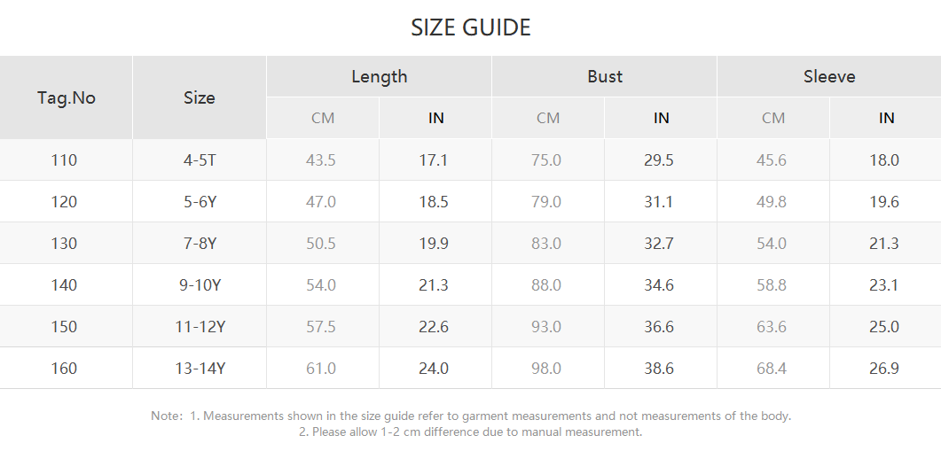 Product size chart in the picture or description.