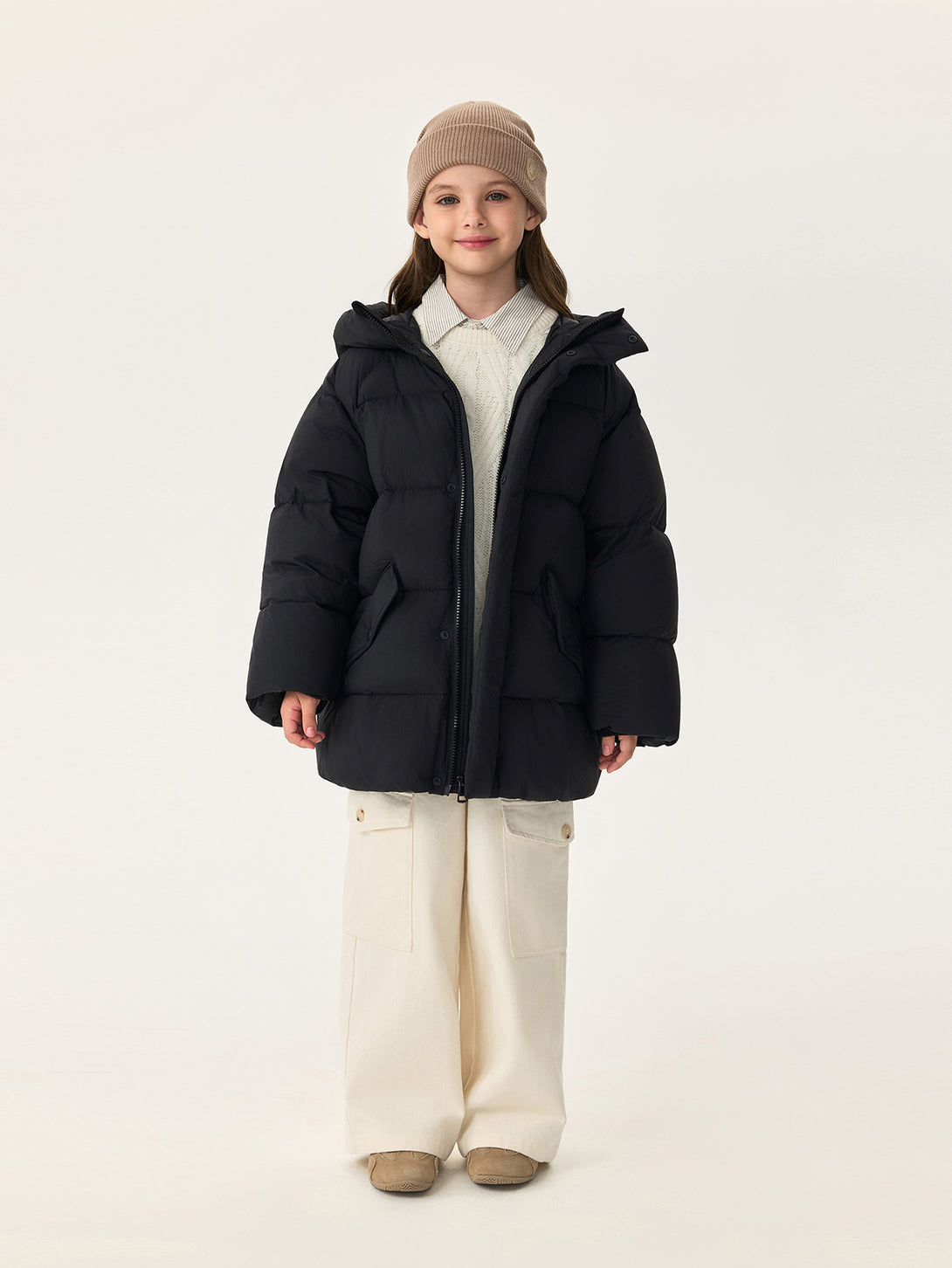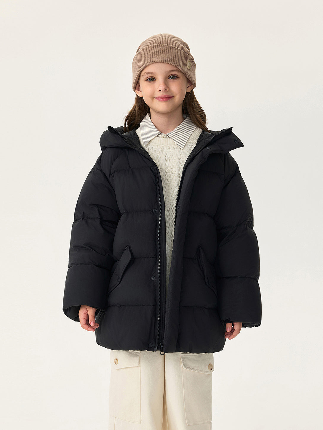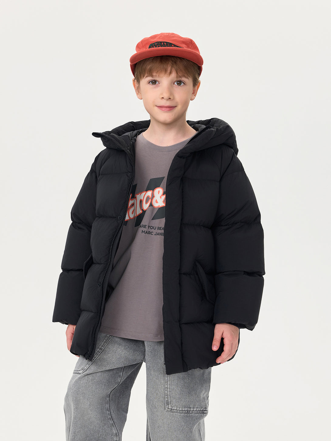 MARC & JANIE Unisex Kids Water-Repellent Warm Mid-Length Hooded Down Jacket 551628