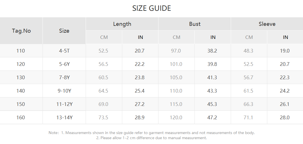Product size chart in the picture or description.